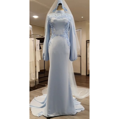Baju nikah baby blue malay wedding dress, muslim wedding gown, weding dress, hijab.